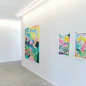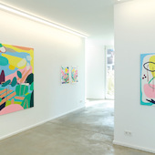 Finissage with the artist on Sunday, September 26th, 2021, 12 - 6 pm. Leonard Korbus, born in Mainz in 1991, studied fine arts in Halle at Burg Giebichenstein, in Vienna at the Academy of Fine Arts and in Leipzig at the HGB. In 2019 he wrote his theoretical diploma thesis entitled "Der Wille zum Überblick" ("The will to have an overall view") on the view from an elevated standpoint. In it he deals with the history of elevated standpoints and their effect.The exhibition "Point of View" shows works by the artist that illustrate his exploration of urban space and viewpoints in a landscape. A central painting in the exhibition is “St. Kiliansberg”, which was made for the 2020 Riesling St. Kiliansberg from Bott winery. The wine, which has been named “Rheingauer Großes Gewächs”, is being released this year in a limited edition with the label by Leonard Korbus.